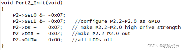 Port2_Init();//初始化P2.2-P2.0为输出端口