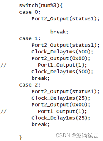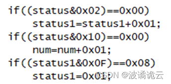通过累加的方式来改变状态,有7种颜色,则当status1为0x08是变为0x01,频率因为只写了三种,则直接采用求余数的方法num%3控制:
