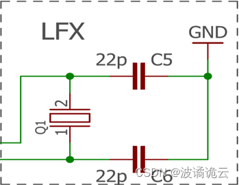 MSP432P401R微控制器上具有多个时钟源,分为内部时钟源与外部时钟源。内部时钟有可调内部数控振荡器 (DCO)、内部 ADC 振荡器 (CMODOS)、系统振荡器 (SYSOSC)、低频内部基准振荡器 (REFO) 和 VLO;外部时钟有高频晶振 (HFXT)、低频晶振 (LFXT)。其中DCO、HFXT、MODOSC 和 SYSOSC 为高频时钟源,而 LFXT、REFO 和 VLO 则为低频时钟源。REFO 是经工厂校准的内部低频时钟源,可以将其设定为生成 32.768kHz 或 128kHz 时钟。VLO 是一种功耗极低的低频振荡器,可提供9.4kHz的时钟(典型值)。LFXT 是一种低频晶体振荡器,能够提供 32.768kHz 时钟。HFXT是一种高频晶振振荡器,能够提供48MHz的时钟。电路原理图如下所示: