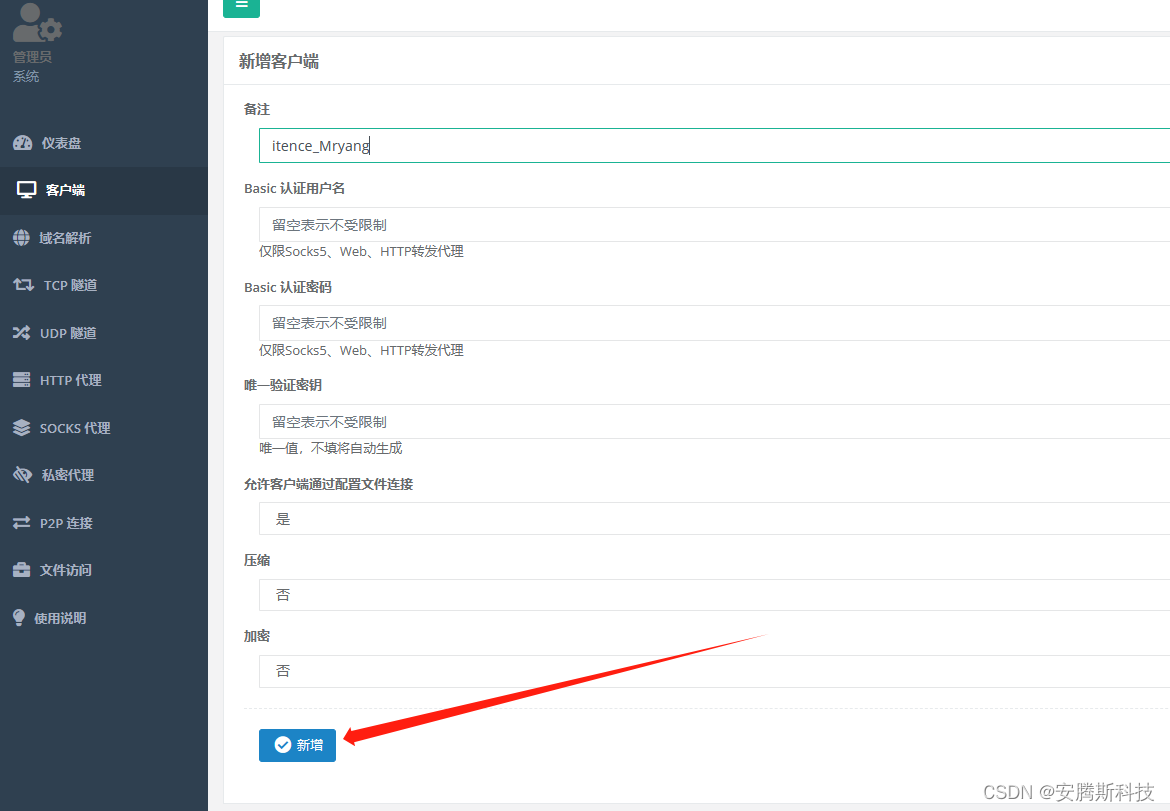 新增一个客户端,一个客户端配置,只能连接一个客户端(windows或者linux)