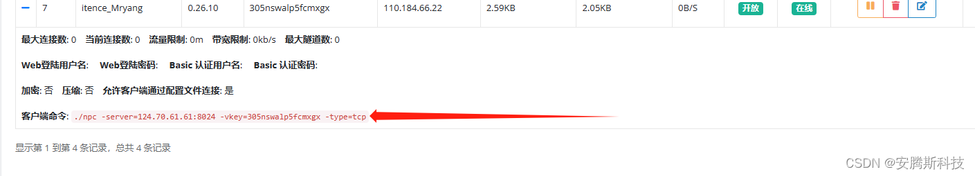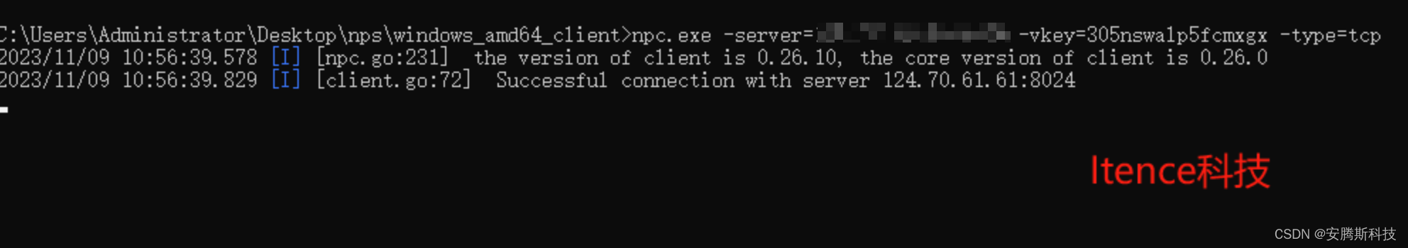 npc.exe -server=ip:port -vkey=密钥 -type=tcp