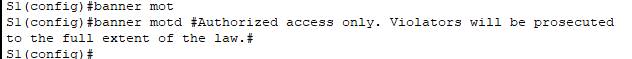 banner motd #Authorized access only. Violators will be prosecuted to the full extent of the law.#