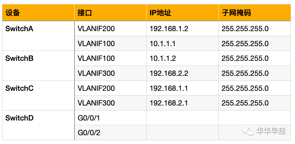 [SwitchA-Vlanif100] ip address 10.1.1.1 24
