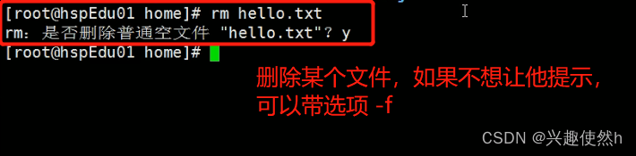 如果需要删除非空目录, 需要使用 rm -rf 要删除的目录(使用该命令一定要谨慎,慎重考虑后在删除)