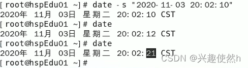 命令:date -s "2020-11-03 20:02:10"