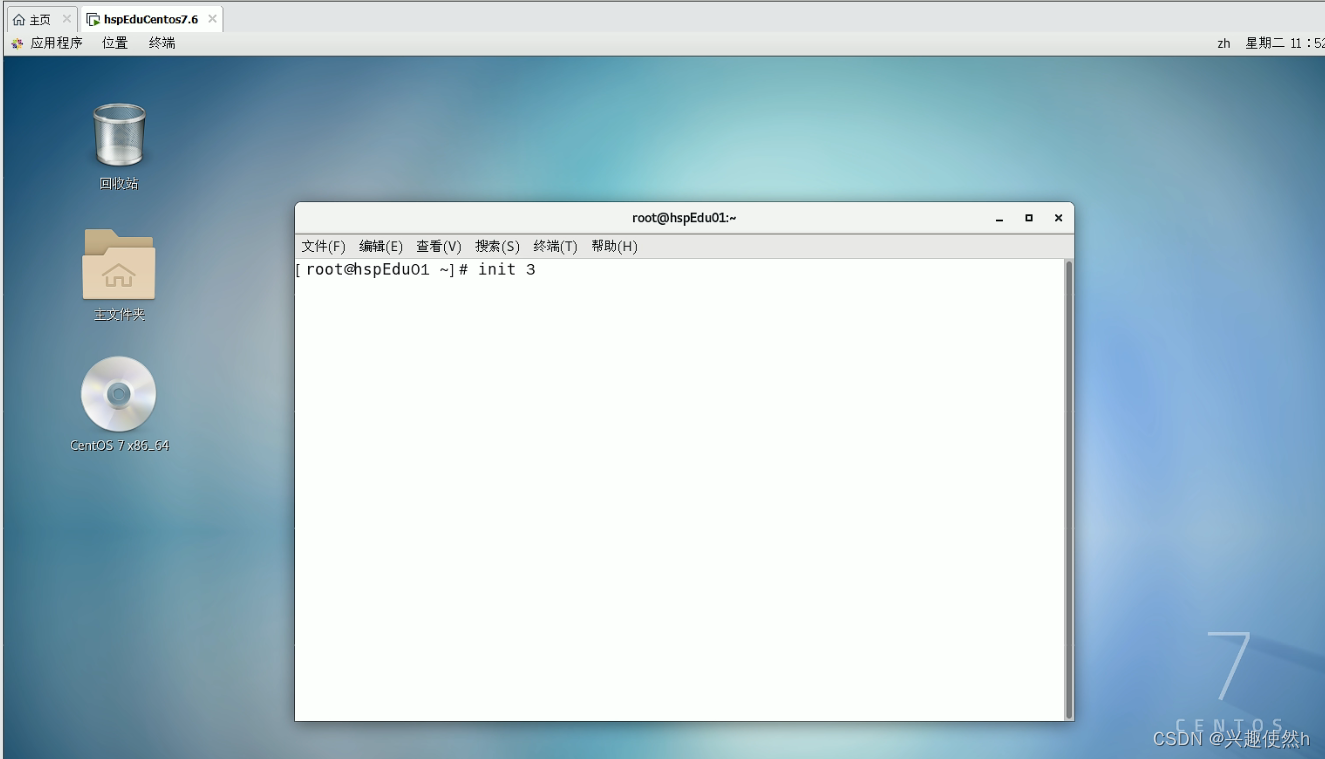 输入 init 5 切回 图形界面 这个运行级别