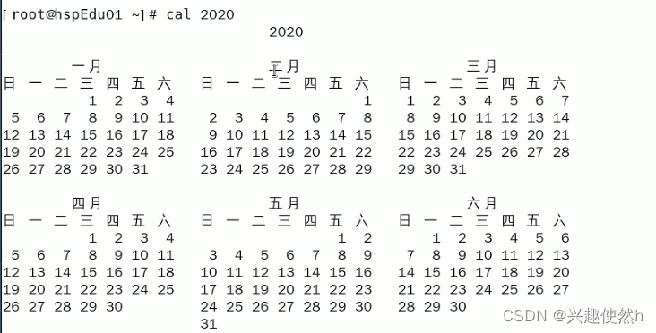 命令:cal 2020