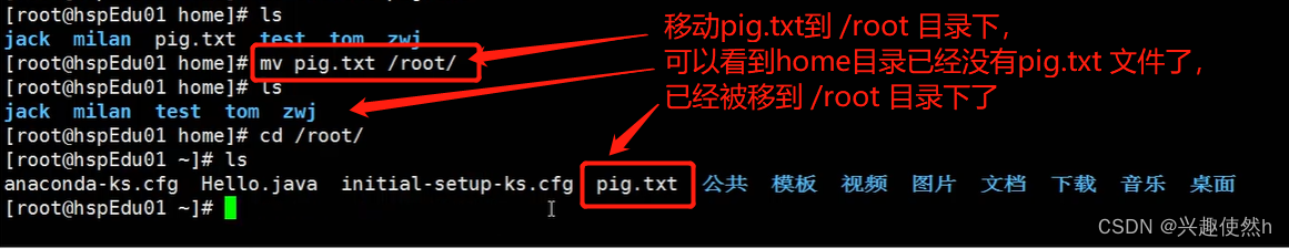 案例 1:使用绝对路径切换到 root 目录 , cd /root