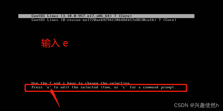 步骤一:首先,启动系统,进入开机界面,在界面中按“e”进入编辑界面。(这个动作要稍微快一点,因为这里只有5秒钟,不然就进入到登录界面了)如图: