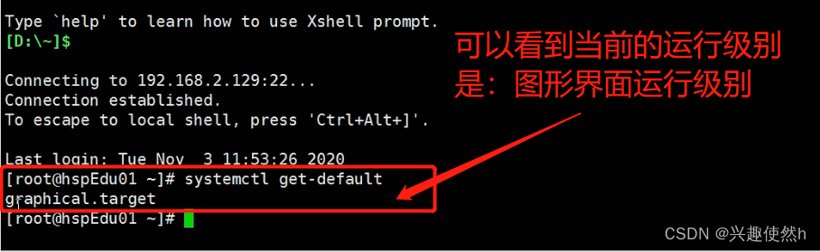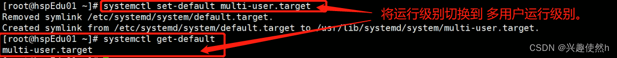 systemctl get-default (查看当前的运行级别)