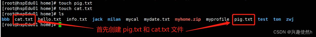 首先创建 pig.txt 和 cat.txt 两个文件