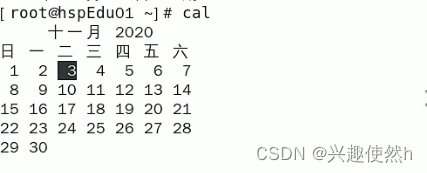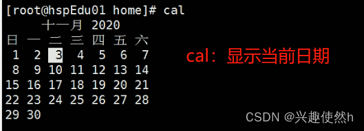 cal [选项] (功能描述:不加选项,默认显示本月日历)