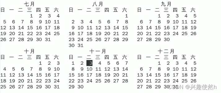 查看日历指令 cal