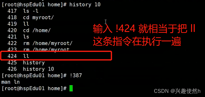 命令为:history 10
