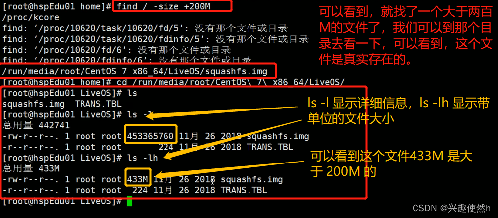 案例 3:查找整个 linux 系统下大于 200M 的文件(+n 大于 -n 小于 n 等于, 单位有 k,M,G)