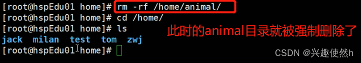 比如: rm -rf /home/animal