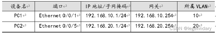 (3)PC1~PC2的端口IP地址设置如表