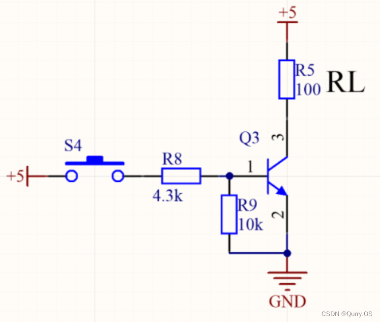 R6作为上拉电阻,S3开关未按下时,b极处于高电平,三极管不导通,开关按下后b极接地导通。