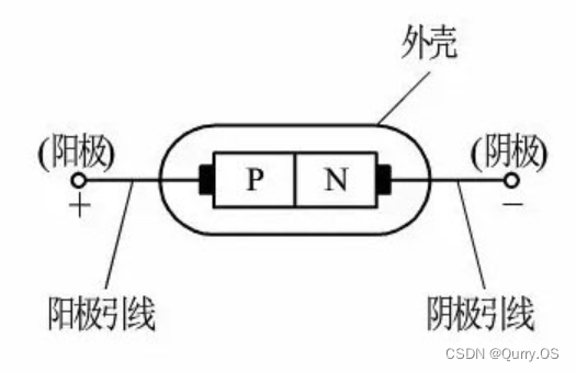 晶体二极管是一个由p型半导体和n型半导体形成的p-n结,在其界面处两侧形成空间电荷层,并建有自建电场,P区是阳区,N区是阴区。