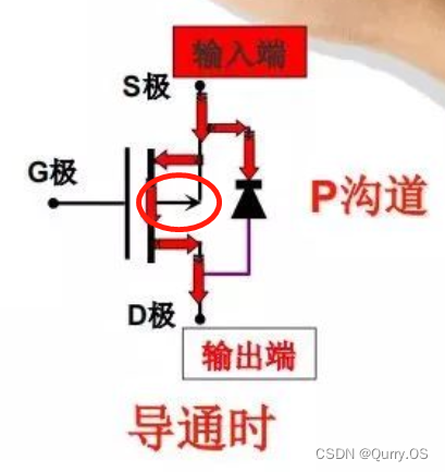 MOS管(N/P沟道)用作开关时,连接的二极管阴极接输入端,阳极接输出端;