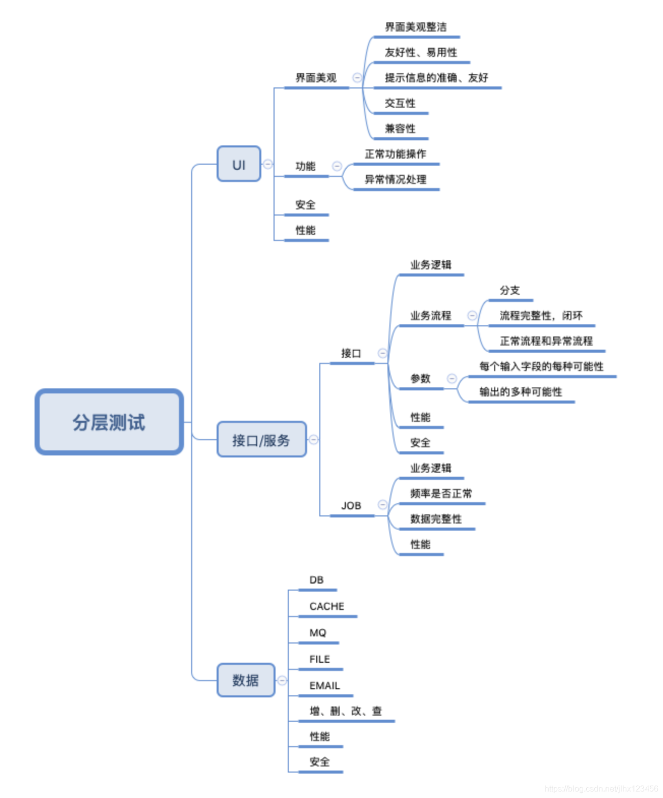 针对上面的分层结构,我们在设计测试用例的时候,需要考虑以下图所示的情况(粗略,还需要拓展):