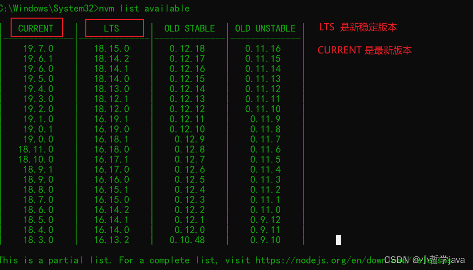 查看node.js最新的一批版本(版本号:偶数是绝对稳定版本 基数是不一定稳定版本)