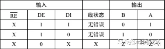RS-485传输方式:半双工通信、==(逻辑1:+2V ~ +6V 逻辑0:-6V ~ -2V)==这里的电平指AB 两线间的电压差。