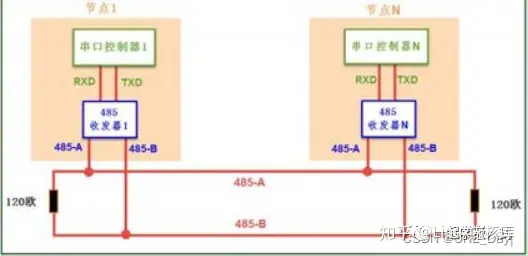 所以要将数据放在485通信线上传输的话,就要将TTL信号转为RS-485的差分信号,然后在AB线上传输,到达节点后再将RS-485的差分信号转换为TTL信号,给节点的MCU进行数据处理