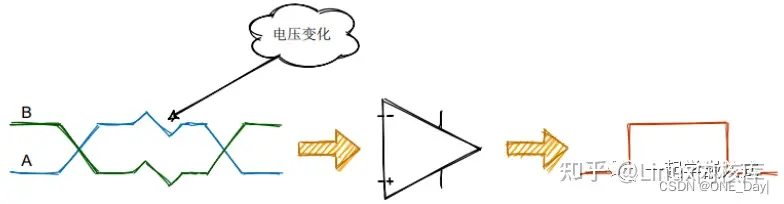 长距离布线会有信号衰减,而且引入噪声和干扰的可能性更大,在线缆A和B上的表现就是电压幅度的变化,但是,采用差分线的好处就是,差值相减就会忽略掉干扰依旧能输出正常的信号,把这种差分接收器忽略两条信号线上相同电压的能力称为共模抑制。