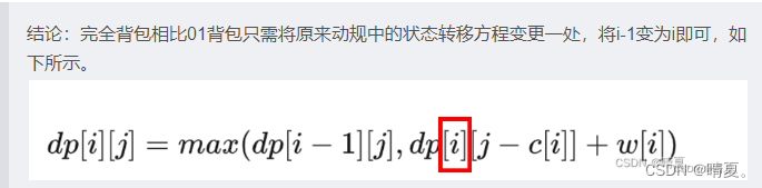 此时dp[j]有两个选择,⼀个是取⾃⼰dp[j],⼀个是取dp[j - weight[i]] + value[i],指定是取最⼤的,毕竟是求最⼤价值, 所以递归公式为