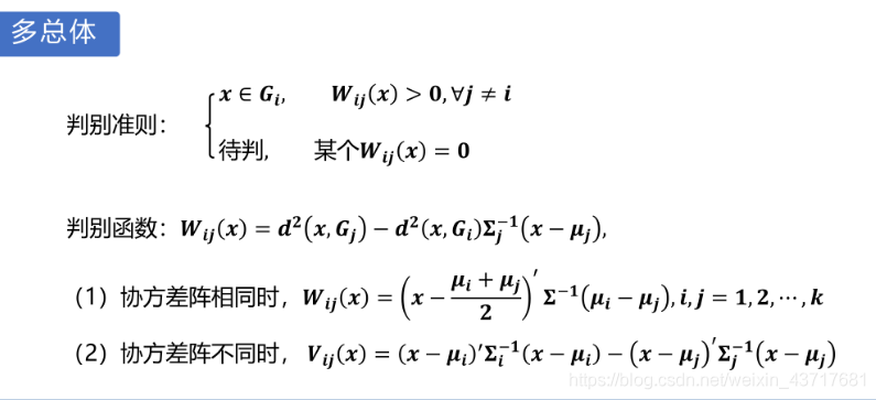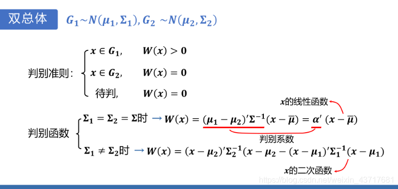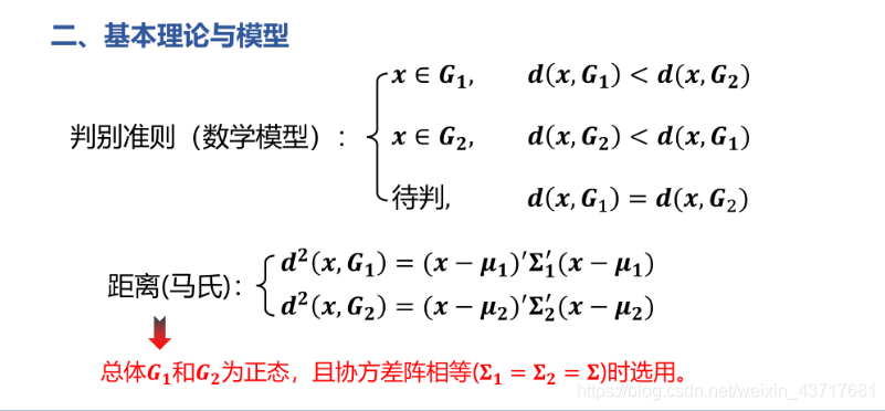 (2)作距离判别时,μ1 和u2要有显著的差异才行,否则判别的误差较大,判别结果没有多大意义。
