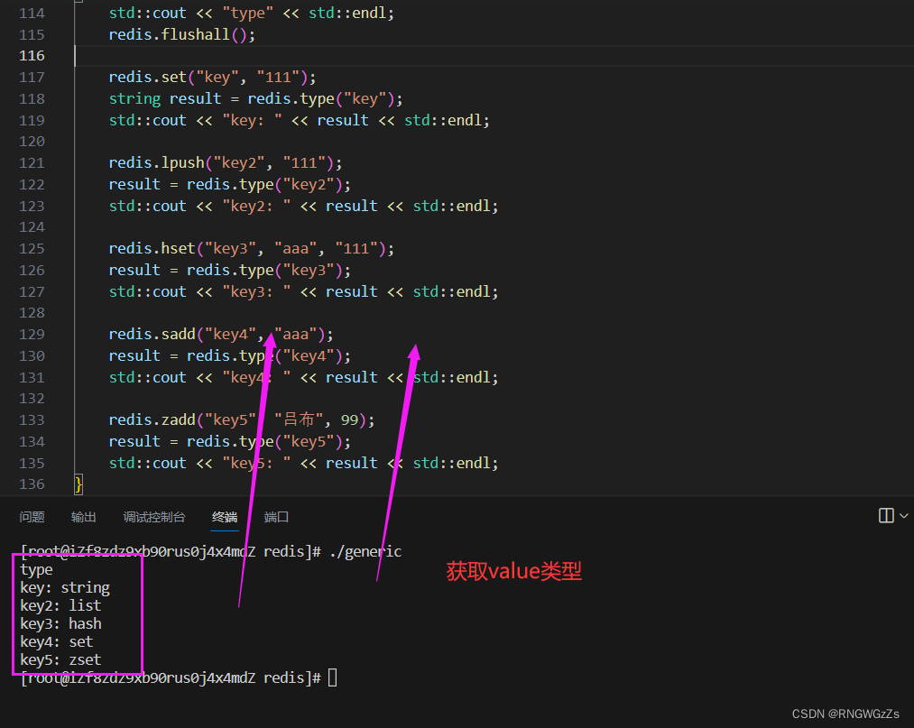 以上就是咱们五种数据结构的一些基本的用C++操纵redis的方式,当然这不是全部,只是一些例举。