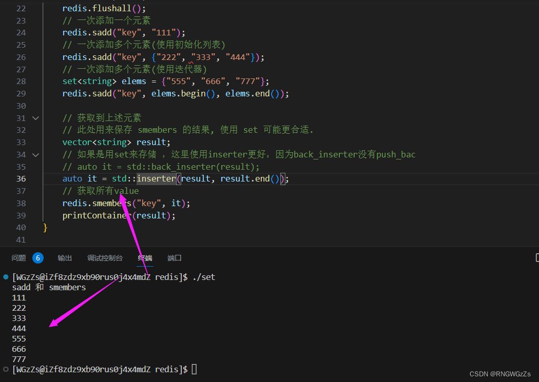 sadd 和 smembers: