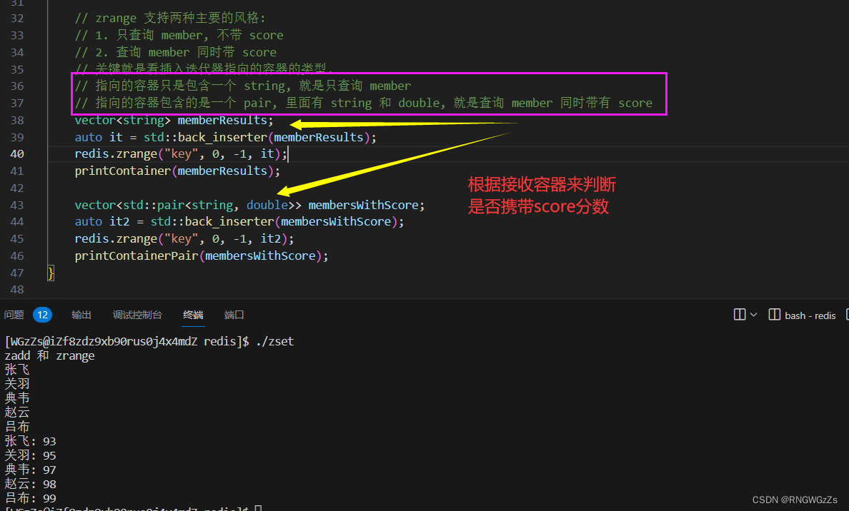 zadd/zrange: