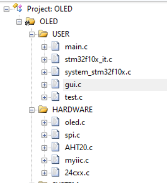 test.c的测试函数不用理会。我们可以在里面加入我们自己的函数,通过调用gui.c里的函数,或者直接操作OLED来实现我们的功能。