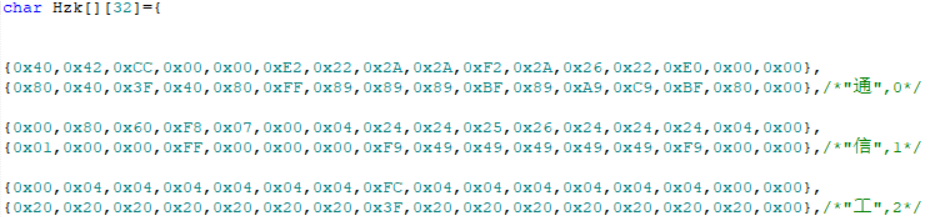 这里有必要介绍一下,例程里的字模库,例程里的字模库通过定义结构体,为字模创建好索引