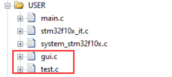 在USER文件夹下,gui.c函数给出了厂家已经定义好的一些现实函数,包括了显示不同大小的函数,显示字符串、汉字、字符的函数。而在test.c里则是写了一些测试的函数