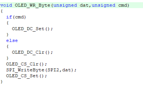 比较重要的就有OLED_WR_Byte、OLED_Set_Pixel函数。其中前者定义如下