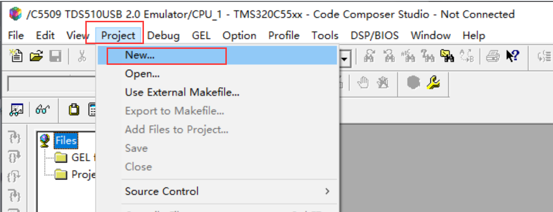 进入CCS,在菜单点击"Project"一栏,选择"New...",新建项目。