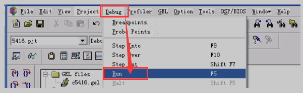 如果软件未连接DSP,需要在菜单->“Debug”->"Conneced"重新连接,直到连接成功。
