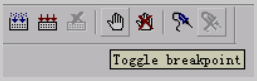 将光标移至要设置断点的那一行,选中,然后单击工具栏的断点开关按钮或按F9: