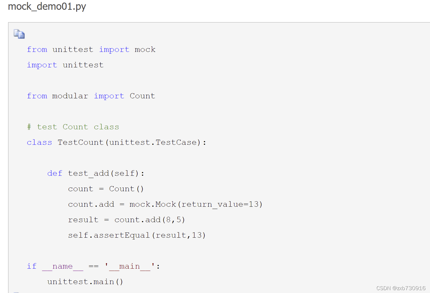 TestCase:一个独立的测试单元,检查输入特定的数据时的响应,需要继承unittest提供的基类:TestCase