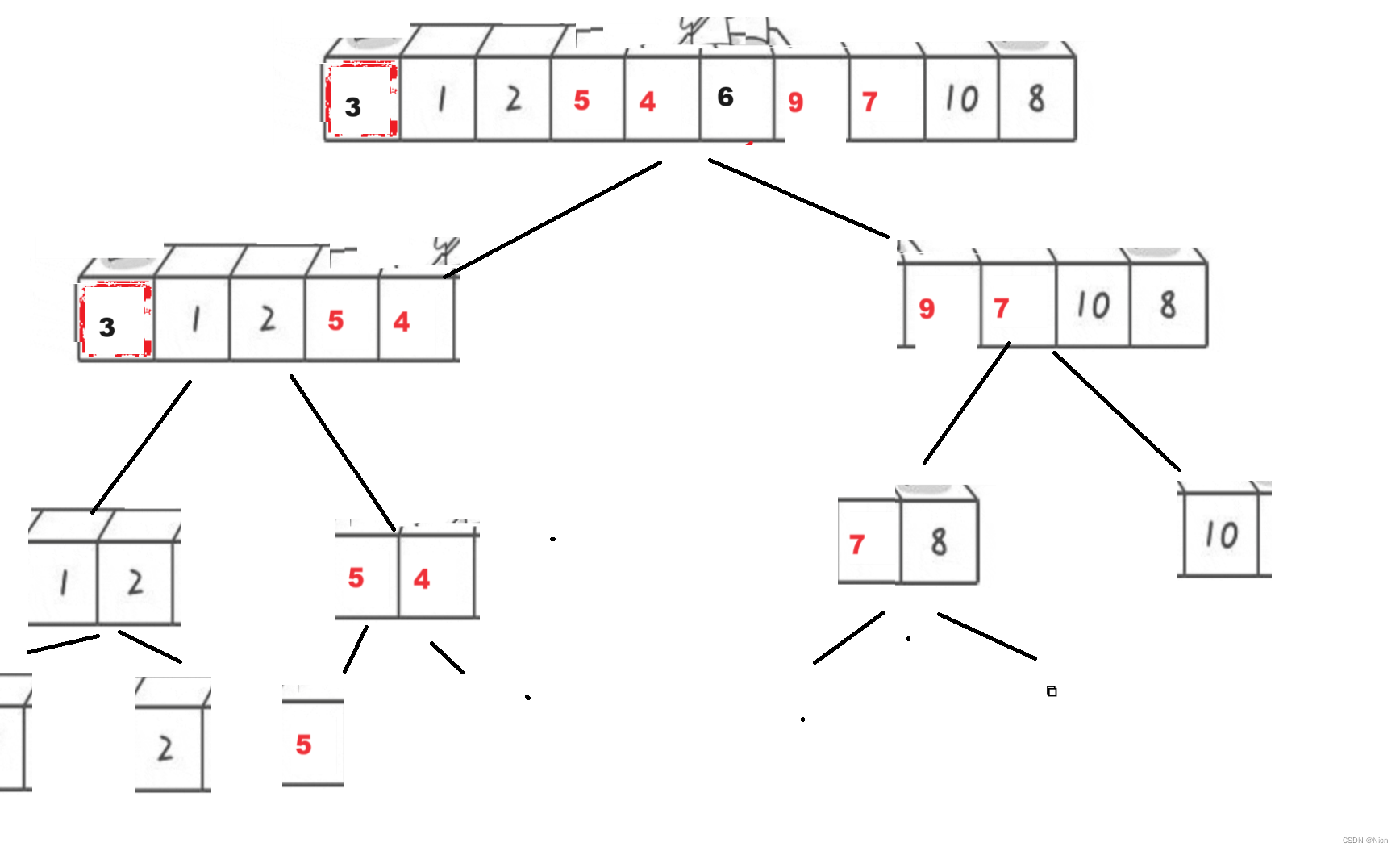 //然后对左右区间进行递归操作 左区间:[begin mid] [mid+1,end}