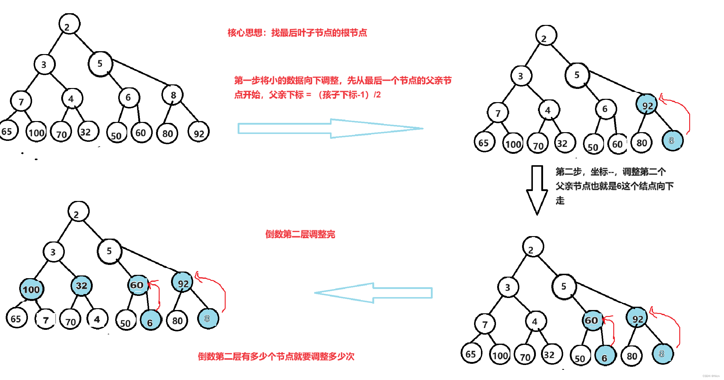n个元素,就调整n-1次