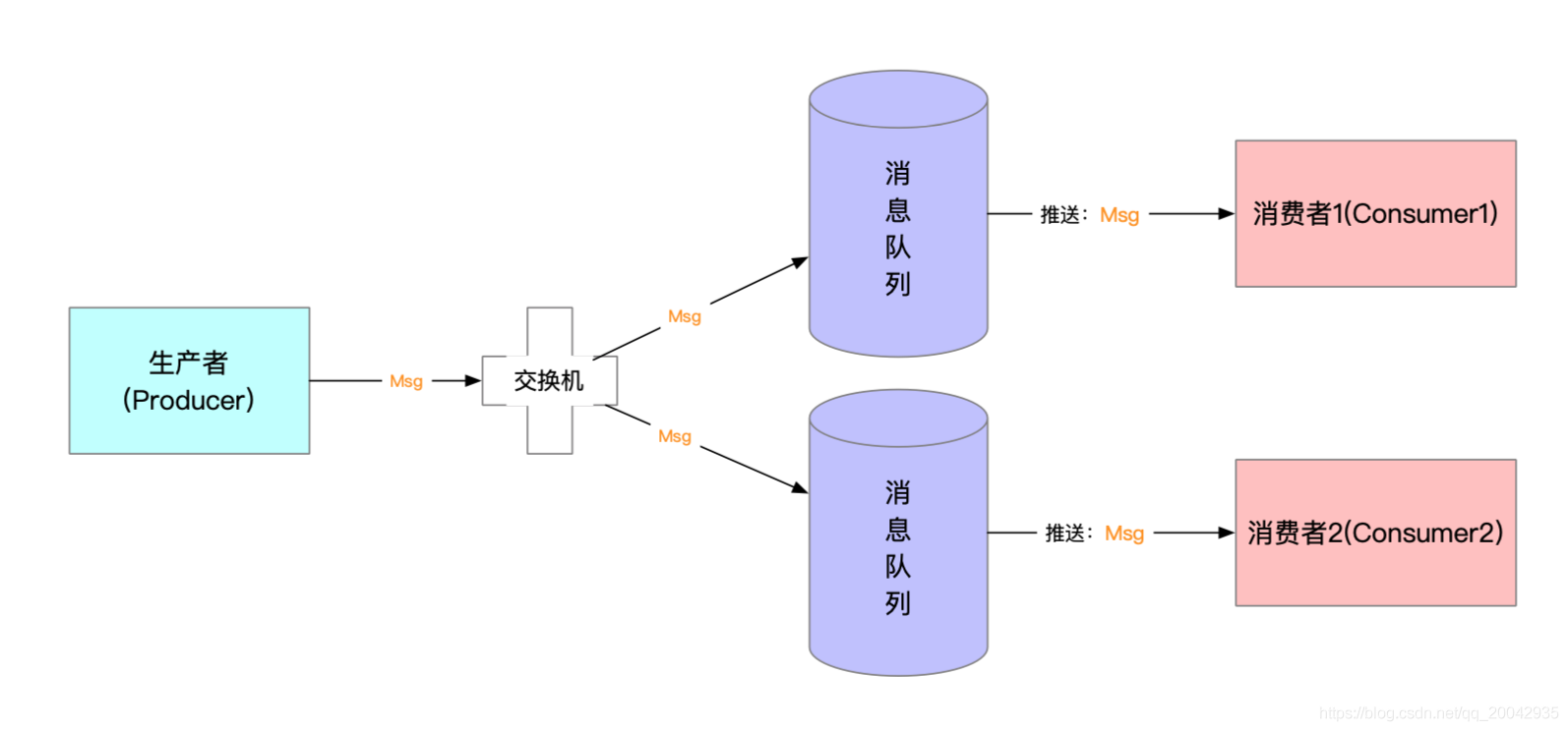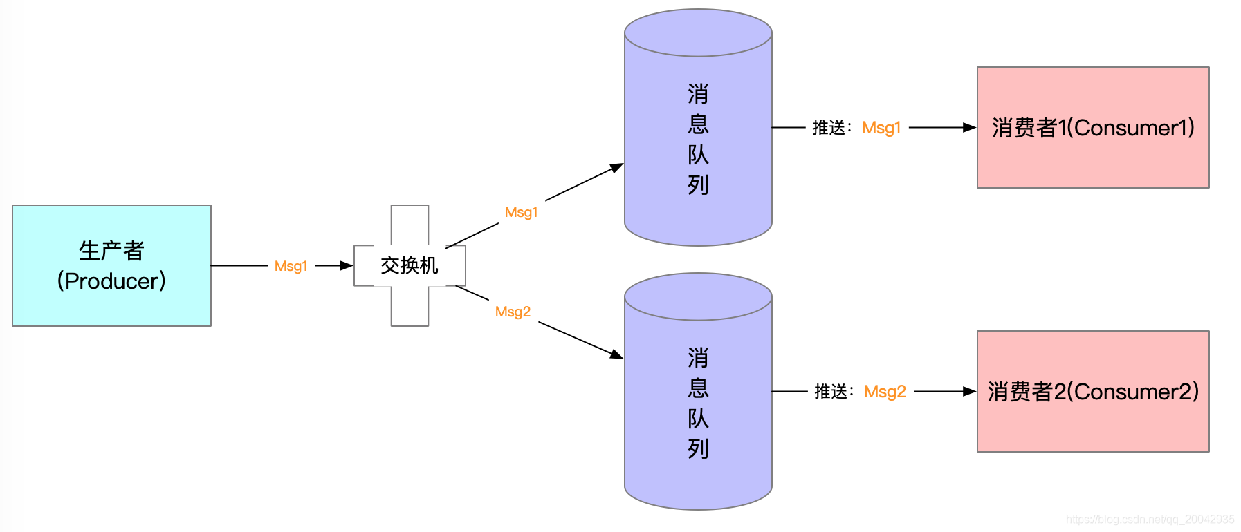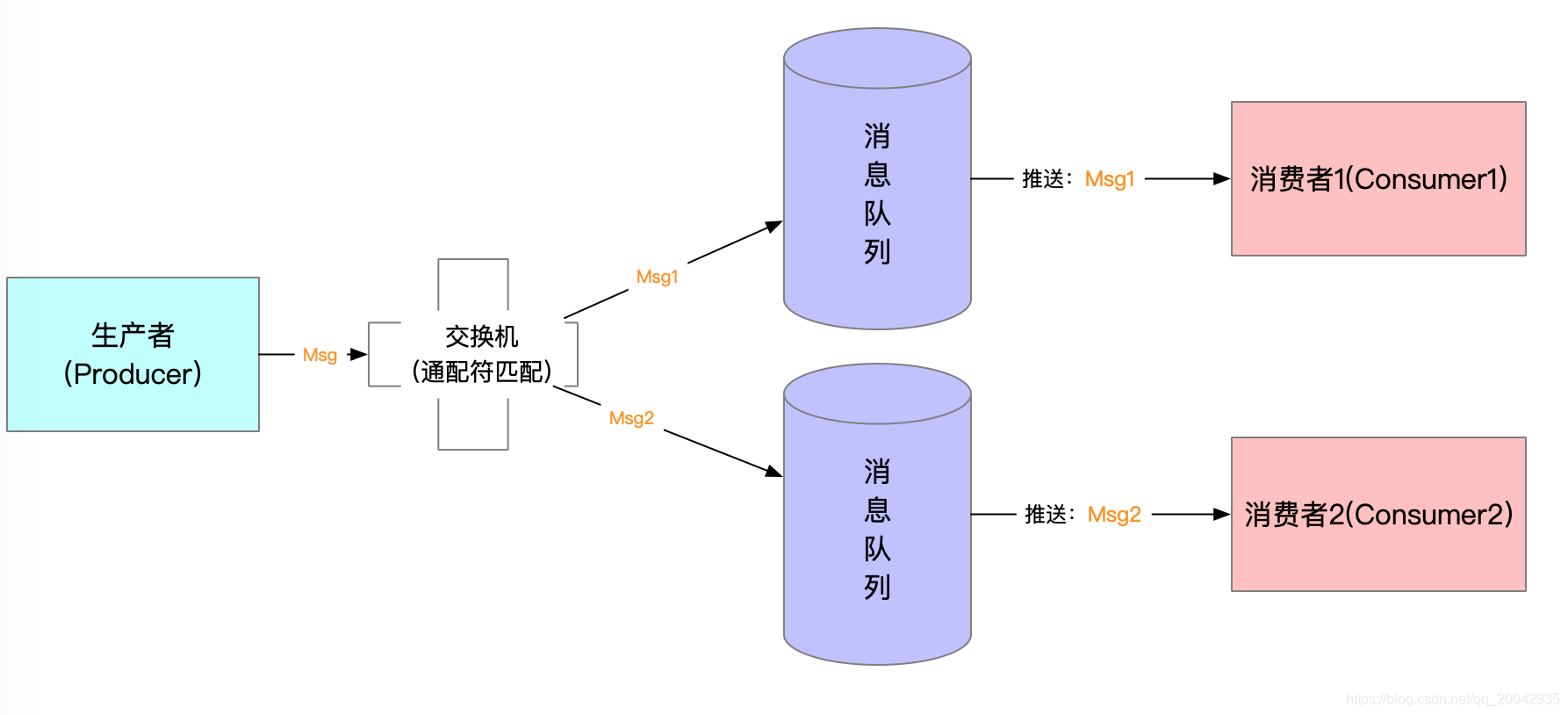 rabbitmq整个消息投递的路径为:producer--->exchange--->queue--->consumer