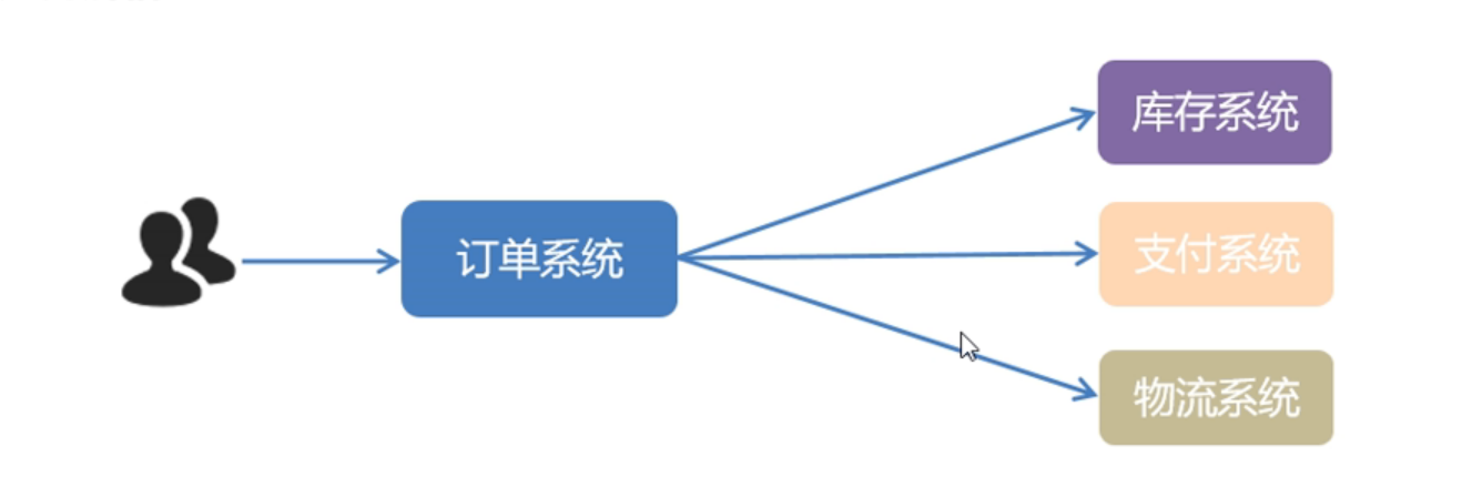 在订单系统中,可以通过远程调用直接调用库存系统,支付系统,物流系统。