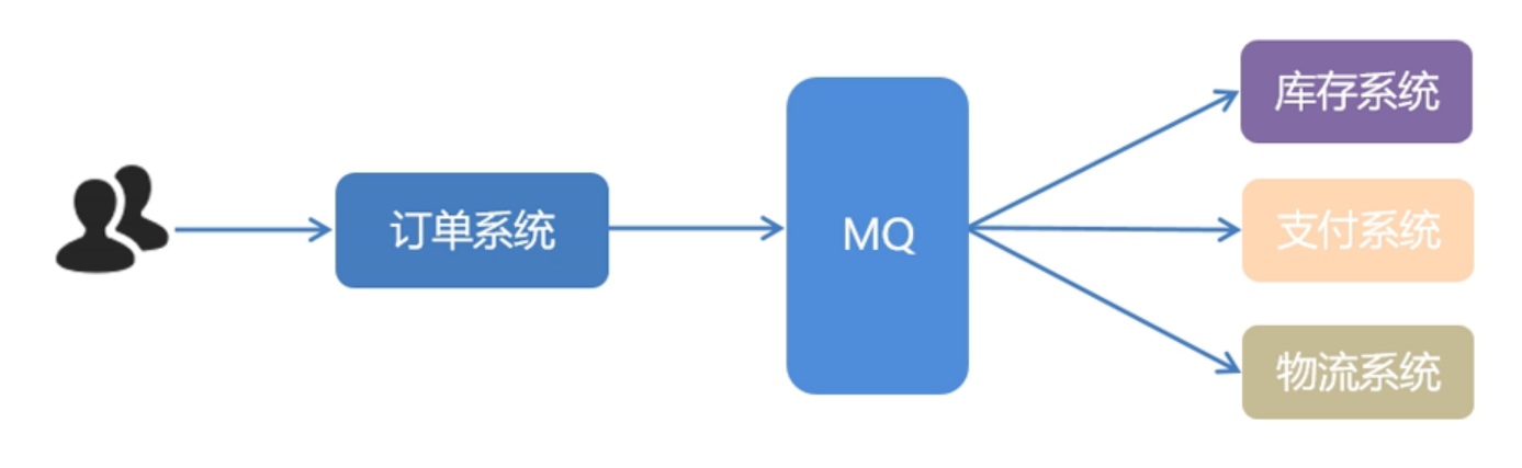 对于这种情况,可以使用MQ来处理,用户下完单就向数据库下单保存订单信息到订单表花费20ms,然后花费ms向MQ发送订单消息,最后MQ分别花费3×5=15ms向库存系统、支付系统、物流系统发送消息 。至于这三个系统收到消息处理的时间多少,就与订单系统不再有关系。用户一共消费5+20=25ms就可以收到下单成功响应。