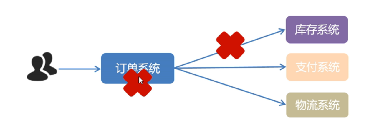 但是这三个系统耦合度太高了,因为订单系统下完订单首先去库存系统将库存-1,然后将返回值返回给订单系统,然后通过订单系统的返回结果来在支付系统进行支付,当支付完成后将返回结果返回给订单系统,最后物流系统拿着支付系统的返回结果进行物流发货。