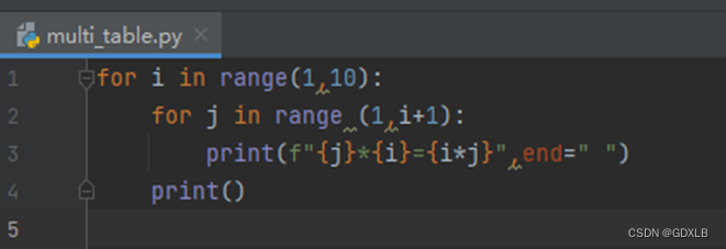 编写程序,实现通过for循环嵌套输出下列样式的九九乘法表的功能。