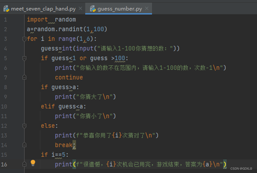 本任务要求编写程序,实现遵循上述规则的猜数字游戏,并限制猜数机会只有5次。